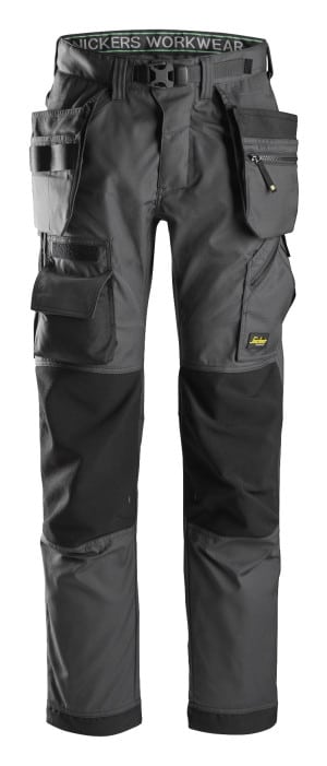 Fleksibel gulvleggerbukse med ekstra slitesterk knebeskyttelse. Buksen er fremstilt i slitesterkt ripstop-materiale med mekanisk stretch, og egner seg ypperlig for arbeid som omfatter lange timer på knærne.
